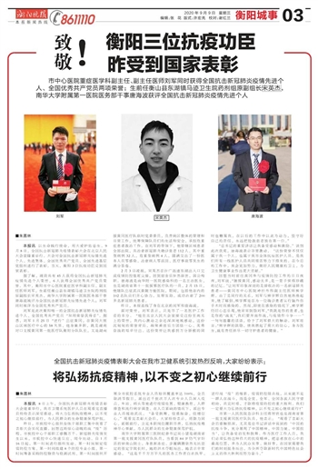 致敬!衡阳三位抗疫功臣 昨受到国家表彰