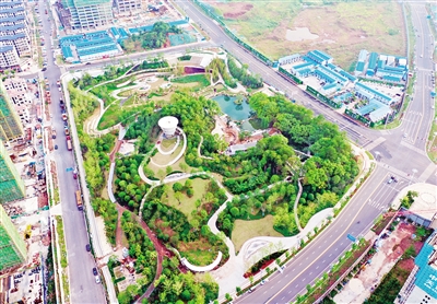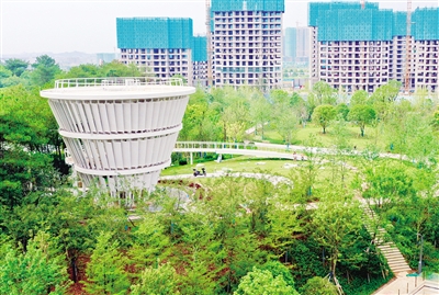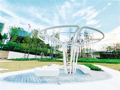 在公园的山体上,一个造型新颖的旋转云台吸引了大家的目光,届时,海量的科普知识通过LED屏展示,让居民在公园里零距离“触摸”高科技。从旋转云台的楼梯盘旋而上,登上露天平台,可一览公园全景。