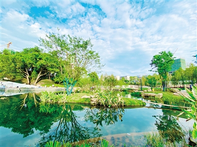 景观水池内,再力花花开正艳,水草绿意盎然,网红之作——声控喷泉足以吸睛,这处能“听懂人话”的喷泉,不仅能“闻”声起舞,还能伴随呐喊声持续上升。