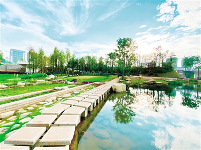 公园内,还设置了花之光岛、草阶看台,走累了,可在此小憩。