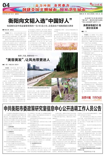 中共衡阳市委政策研究室信息中心公开选调工作人员公告
