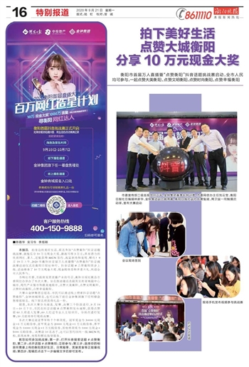 ~~~衡阳市首届万人直播暨“点赞衡阳”抖音话题挑战赛启动,全市人民均可参与,一起点赞大美衡阳,点赞文明衡阳,点赞时尚衡阳,点赞幸福衡阳