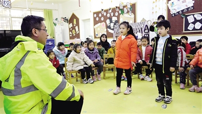 12月2日,衡山县公安局交警大队民警走进该县新世纪实验幼儿园,带着萌娃学安全。当天上午,衡山县公安局交警大队民警还通过在社区摆放宣传展板、发放宣传册等,开展了形式多样的“122”系列宣传活动,倡导大家树立通行规则意识、安全自律意识、社会责任意识。