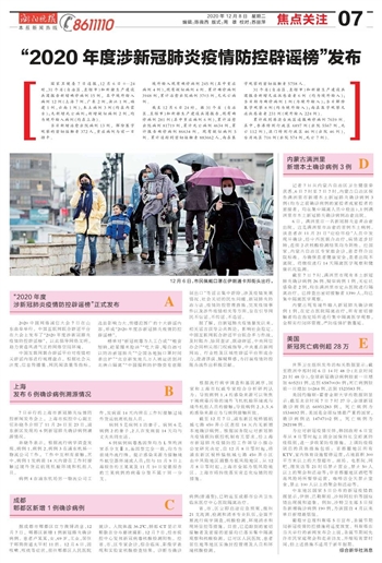 “2020年度涉新冠肺炎疫情防控辟谣榜”发布