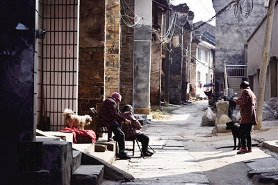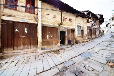 时间,仿佛给人们留下一页发黄的历史。那狭窄而弯曲的古石板道,拥挤而墙面剥落的明清建筑,古老陈旧的门窗、石槛、石墩、石碾等,都记载着小农经济时代商埠的印记。路旁偶尔留下用于染布的“踩石”,让人仿佛看到当年这里的纺织、印染作坊的繁荣场面。