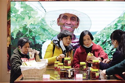 当天,记者在现场看到,在东洲岛设立的“一县一特”展销基地,全市各县区以及衡阳对口支持的湘西花垣县、新疆鄯善县等十余个展馆内,本土好货诸如长乐红薯粉、衡阳糄粑、大三湘茶油、南岳云雾茶、衡东黄贡椒等,吸引了广大市民驻足询价、竞相购买,花垣土家腊肉、鄯善巴旦木等也备受青睐。本土网红纷纷做客直播间,为扶贫产品代言。