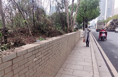 24日下午,在娃哈哈工业园西侧20米地段,记者看见一座砖土结构的高压电线钢塔桩基将人行道挤占了一大半,仅留下宽约1米的过道供行人通过,桩基内杂草丛生,充斥着枯枝等杂物垃圾。“架空的高压电线钢塔原本竖立在砖土结构的桩基上。”附近居民介绍说,高压电线已下地,钢塔拆除已2年了,桩基却迟迟未拆除,行人迎面相逢,只能无奈侧身而过;一些路人甚至绕走机动车道,存在安全隐患。当地群众希望,有关职能部门应尽早将桩基拆除,还道于民,为过往路人提供安全舒适的出行环境。