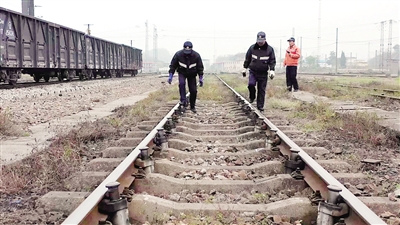 当然,“踩”顶仅仅只是作业中的第一步,为了防止在作业中出现故障的错判、漏判,“减速哥”需要对股道上的减速顶进行逐一的观察测量、线路扒渣等程序,才能准确判断一颗减速顶是否存在故障。“踩顶”虽是技术活,但极其考验脚劲。据统计,当日施工作业4小时,平均每人需要踩顶达1400余次,下蹲起身多达300余次,劳动强度非常大。从事维修作业15余年的工长陈仲文,其脚后跟结下了厚厚的茧,遇天气变化,其跟腱炎疼得右腿点不着地。
