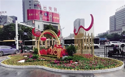 ~~~蒸湘区园林绿化所摆花造景,增添喜庆色彩