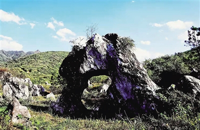 野猪林北,有奇石区。石突兀于菜地中,最为著名的有状如拱洞者,石中有门,门壁有洞,石上有小树。海已湾有泉水塘,冬温夏凉。
