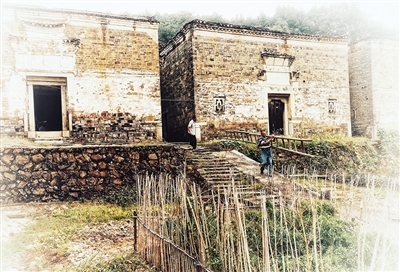 一般的古村是依村而筑屋,层层外延,所以越外层越年代近。但中田古民居却反其布局而行之。从最外沿的月光塘开始,以弧形内缩。越是外围越是宏伟完整且高大,而且年代越是久远。至于最里层靠山民居差不多是民国时期的了。