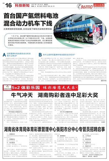 首台国产氢燃料电池 混合动力机车下线