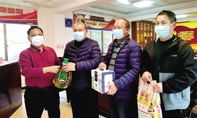 广铁工务大修段党政工领导把开展年前送温暖暖人心活动当作一件大事来抓,购置米、油、牛奶等慰问物资,深入管内韶关、长沙、怀化、衡阳等地走访慰问家庭困难职工,把组织的关怀和温暖送到职工心坎上。图为段工会主席张开洪(左一)在衡阳焊轨车间党政负责人的陪同下慰问大病职工万丽君(左二)时情景。■通讯员 陈志清 摄