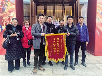 本报讯 “村里有什么困难,你们总会竭尽所能伸出援手,我和村民们都很感激。” 2月5日,衡南县鸡笼村代表专程赶到衡阳市区,亲手将一面绣有“情系村民显担当、爱心助农解民忧”的锦旗送到碧桂园爱心志愿者手中。