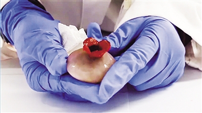 报道称,研究人员使用了一种类似记号笔的笔,用红色和黑色的墨水在一块岩石上,画了一朵小红花模样的图案。他们在笔中加入两种不同的墨水:一种是红色墨水,其中含有被称为表面活性剂的化合物,可使油墨的黏合性降低;另一种是黑色墨水,不含表面活性剂,它可将图形“锚定”在其绘制的表面上(如岩石),使得红色墨水绘制的图形在转变为3D形状时能够固定。