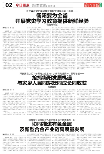 衡阳要为全省 开展党史学习教育提供新鲜经验