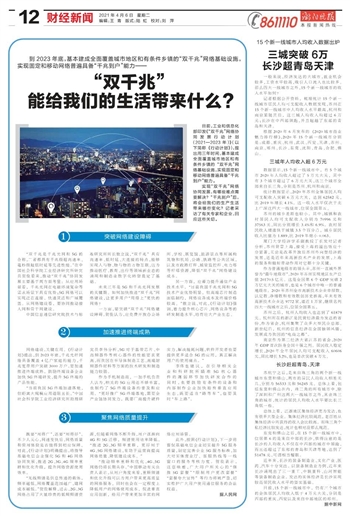 到2023年底,基本建成全面覆盖城市地区和有条件乡镇的“双千兆”网络基础设施,实现固定和移动网络普遍具备“千兆到户”能力——~~~