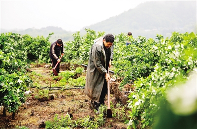 4月14日,衡南县谭子山镇水井村的山坡上一阵花香袭来,300余亩脐橙正值花期。“这周都是雨,气温只有20℃左右……”10时左右,陆高像往常一样,盯着手机屏幕,查看本周的天气。深谙天气对脐橙种植的影响,每年到开花结果的过渡期,他就显得“心事重重”:“过去讲,农业种植靠天吃饭,现在是‘天要帮忙’,要注重气象预报。”