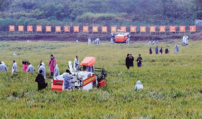 在衡南县清竹村进行的袁隆平领衔的杂交水稻双季测产达到了亩产1530.76公斤,其中早稻619.06公斤,第三代杂交水稻晚稻品种“叁优一号”911.7公斤,超过了1500公斤的预期目标。这一次,袁隆平院士虽然没能来到现场,但通过视频与现场连线,他表示:心情激动,本次测产是非常重要的,意味着一亩地可以养活5个人。