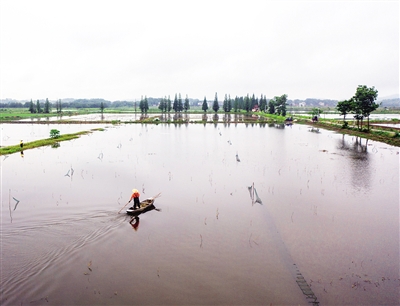 常宁市胜桥镇致力于农业的产业升级,大力发展特色养殖。泉塘村作为衡阳市知名的小龙虾养殖基地,近年来,采用公司加农户的模式,招商引技术,不断扩大小龙虾的养殖规模。图为虾农在细雨中管护虾塘。