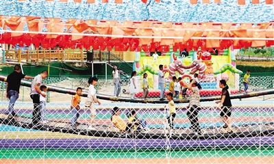 “六一”当天,记者看见,灵官庙村党总支副书记、村主任陈宽新正在亲子乐园项目现场与众人一起为孩子们做好各项服务。
