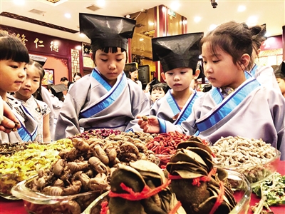 6月14日,端午佳节,位于蒸湘区的国仁堂中医馆举行了一场特别的端午节体验活动,20名小朋友在老师和家长带领下,换上呆萌的药童装变身“小郎中”,实地感受神奇的中医药文化。 ■罗 盟 摄