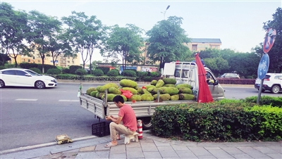 12日下午,在衡州大道西合路口西侧地段附近,记者看见一名身穿红色T恤的男青年坐在水果摊车旁,“海南菠萝蜜亲甜,快来看,快来买。”车顶红色高音喇叭反复播放广告,一台电子秤摆放在车尾,静待顾客前来购买。记者发现,过往车辆纷纷减速,与水果摊车擦身而过。“这里恰巧处于道路交叉口,车多道窄,水果摊车占道经营,遮挡司机视线,易发生交通事故。”附近居民告诉记者,除了菠萝蜜摊车,还有一些满载西瓜的摊车也不时停靠在这里促销叫卖,交通高峰时段,极易造成交通堵塞。当地群众希望,有关职能部门应加大重点地段及重点时段的巡查力度,坚决取缔这些违规占道的水果摊点,及时消除安全隐患。