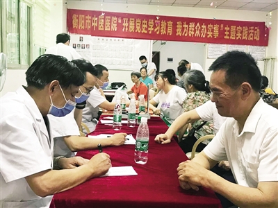 本报讯 为积极推进“学党史,我为群众办实事”活动,近日,衡阳市中医医院临床二支部走进石鼓区演武坪社区及养老中心,为社区居民及养老中心老人进行了健康知识讲座及义诊活动。