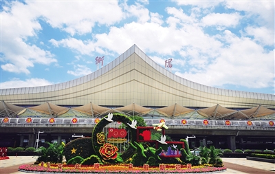 南岳机场航站楼前布置的花卉景观。 ■本报记者 金明达 摄