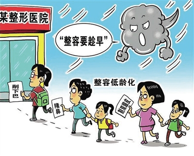 最近几年的整容趋势越来越低龄化,一到假期,整形外科排满了稚气的学生,其中包括不少即将大学毕业的学生,还有高考结束的考生。尤其是,爸妈带孩子去整容,成为目前的一个流行趋势。