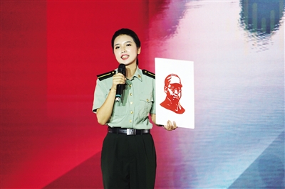 在风采展示环节中,罗佩君还现场表演了衡东剪纸《罗荣桓元帅头像》,技法高超、刀法精细的剪纸立刻征服了现场评委与观众,也让大家对省级非遗保护项目——“衡东剪纸”更多了一份关注。