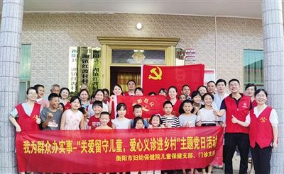 本报讯 为扎实推进党史学习教育走深走实,认真落实“健康服务五进行动”公益服务活动,深入开展“我为群众办实事”“关注健康·服务百姓”义诊和健康科普活动的党员实践活动,7月21日下午,衡阳市妇幼保健院儿童保健党支部联合门诊党支部组织开展了“关爱留守儿童,爱心义诊进乡村”主题党日活动,为衡阳县三湖镇红渡村的留守儿童提供科普宣教、健康义诊、疾病筛查、健康指导等多项健康服务。