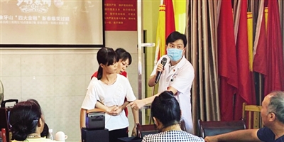 活动中,儿保科医生刘海龙用理论解说结合动作示范的方式,为当地的空巢老人和留守儿童科普了异物梗阻的海姆立克急救法;急诊科肖敏运用多媒体课件,图文并茂地讲解了预防溺水的安全教育知识;眼科医生杨华讲解了科学用眼知识,强调培养儿童良好的用眼卫生习惯和视觉环境的重要性,用通俗易懂的语言与孩子们进行互动,现场气氛活跃。