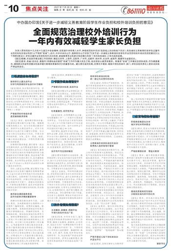 中办国办印发《关于进一步减轻义务教育阶段学生作业负担和校外培训负担的意见》~~~