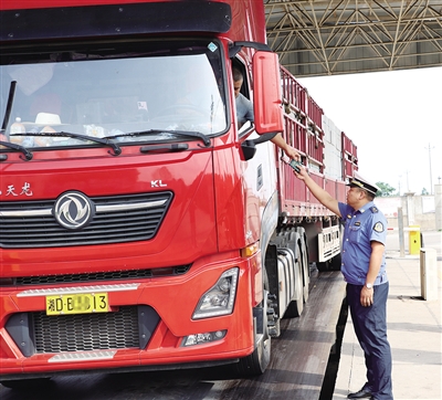 “您好,我们是交通执法人员,请您出示道路运输证和货物磅单。”吴冲一边仔细检查过往货运车辆,一边告诉记者,近期,天气持续高温,部分车主抱有侥幸心理,认为高温时间段执法人员会在空调房里休息。而治超大队执法人员其实是全天候不间断执法,打击违法运输行为,保障市民群众生命财产安全。