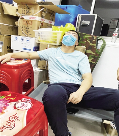 27岁的核酸检测组组长刘治,自本轮疫情发生开始,连续在岗5天,没有休息一天,晚上睡在实验室,随时候诊,以备临床高度疑似病例的检测及承担相关县(市)区医院送检标本的复检任务。父母见他数天都没有回家,担心他的身体吃不消。而他坚定地说道:“为了助力疫情防控,守护全民健康,再辛苦也不怕。”
