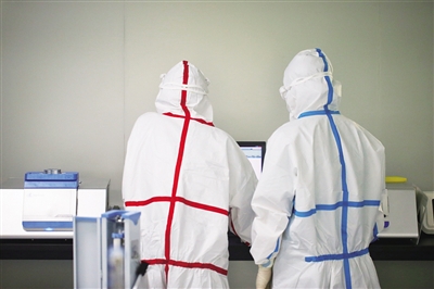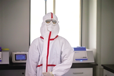 为了防止随时可能与含病毒的标本零距离接触,他们“全副武装”做好防护,以防止感染。实验室空调是16℃恒温的,但当检验医师们穿着密不透风的防护服,带着面罩、护目镜、双层手套在实验室全神贯注工作时,却热得像在蒸桑拿。走出实验室时常常全身湿透,鼻梁受压产生淤血,脸上布满压痕。