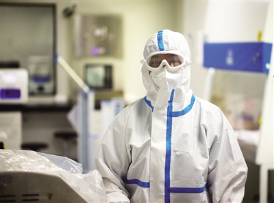 “在常人眼里,身穿防护服、眼戴护目镜的检验医师充满神秘感,但其中的艰辛和危险,只有我们自己最清楚。”该科副主任彭咏麟说,“一进入实验室常常就是10多个小时,实在累得不行了,就趁实验间隙在椅子上靠一会儿。”
