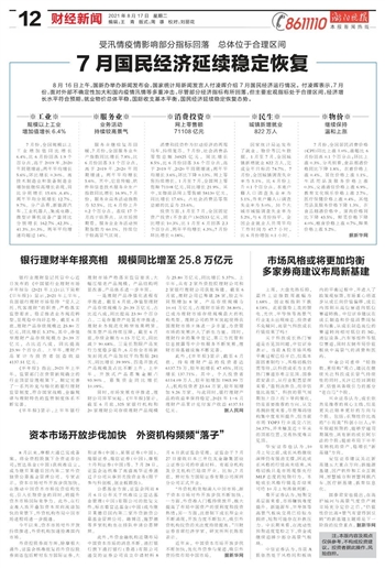 受汛情疫情影响部分指标回落 总体位于合理区间~~~