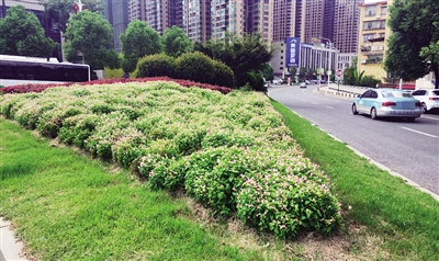 不少市民称赞的漂亮鲜花是夏堇,夏堇又叫蓝月亮,花朵小巧,玲珑可爱,花色绚丽。岳屏公园北门绿地添植了7000盆红色的鸡冠花、南门花坛新栽了4000盆夏堇,衡阳抗战纪念城景区栽种了3000盆百日草,栽植面积共达400平方米,一周左右可花开成景,盛花期为9月份,花期可持续3个月左右,园方组织力量早晚浇水,确保花卉健康生长。市园林绿化服务中心相关负责人透露,连日来,衡州大道、蔡伦大道、北二环与蔡伦大道交会处匝道等主次干道的绿化带正加紧开展大规模换花前的准备工作,眼下已完成平整场地、土壤消毒等工作,8月下旬我市主次干道绿化带将陆续大规模换花,此番栽植鲜花以鸡冠花、孔雀草为主,花卉较为耐旱,花期长,以红、黄色为主色调,下地栽种鲜花达130万盆,面积2万余平方米。