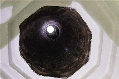 周超还告诉我们一个细节,塔内每层地板的青砖经过清理、翻砌后,已经完整地显示出类似八卦图的形状,中央位置均有一个八边形的孔洞。而每层的孔洞均与葫芦型塔刹(顶端开口)连成一线,直通天际。