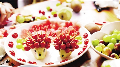 生动形象的猫咪火龙果、活灵活现的刺猬菁香桃、憨态可掬的老鼠猕猴桃……不一会儿,在男女青年的默契配合下,一盘盘精致有趣的水果拼盘新鲜出炉,巧手拼出来的果盘充满了“初恋的味道”,青年们也迫不及待地品尝着自己亲手制作的成果。