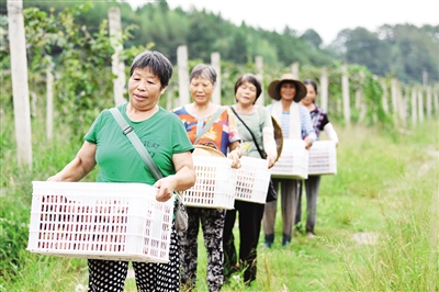本报讯 眼下,正是红心猕猴桃成熟收获的季节。衡阳县三湖镇联洋村猕猴桃种植基地,100余亩红心猕猴桃已陆续进入采摘期。8月26日早上,年近七旬的村民颜邦银吃完早餐,便来到离家不远的猕猴桃种植基地,开始采摘猕猴桃。“没想到我这么大年纪,将家里的6亩地流转给基地种猕猴桃后,每年能领到2400块钱流转费,加上在基地打工,每月可拿到2000多块钱工资,收入还可以!”颜邦银高兴地说。像颜邦银一样,当天共有10多名村民在基地里忙活。