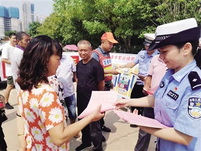 民警和交通安全宣传志愿者一起发放宣传资料200余份,免费发放安全头盔50顶,并一一答复村民关于电动车、三轮车的法律问题,有效增强了村民们的安全意识、规则意识,大家表示一定会守法文明出行。
