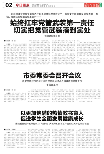 冯毅宣读省军区党委党内任职通知并颁发任职证书,秦国文任衡阳警备区党委第一书记。秦国文在任职大会上表示——~~~刘明建朱健出席