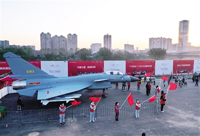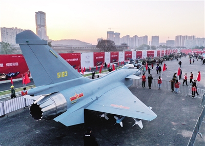 11月10日,东洲岛国防兵器展现场吸引大量市民前来打卡拍照。今年的11月11日是中国人民解放军空军成立72周年,在空军节来临之际,不少市民扶老携幼,举家游玩,近距离目睹歼-10C飞机的风采。■周 围 摄