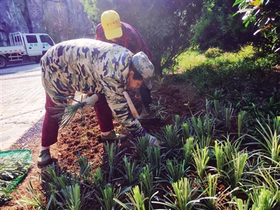 12月2日,在回雁峰景区飞瀑流彩景点旁,记者看见20余位园林工人正埋头栽植金边麦冬,自今年10月开始,我市组织力量对城区范围内的绿化苗木进行了全面普查,统计了断档缺株、黄土裸露绿地补植所需苗木种类和数量,制定了详细的补植方案。市主干道和广场绿化所相关负责人介绍,在补植过程中,将对松土、基肥施用、苗木栽植、养护管理等严格把关,确保补植效果。今年秋冬季将补植香樟、栾树等乔木80余棵,小叶麦冬6000余斤,以及杜鹃、红叶石楠、四季桂等。主干道绿化带人为践踏仍较为严重,主要位于解放大道、船山大道及东风北路等地段,初步统计显示,今年以来,约800余平方米绿地遭遇人为践踏损坏,下一步将全面开展衡州大道等公共绿地大花月季补植及环境卫生整治、行道树提枝修剪整形等工作,强化秋冬季补植苗木的养护管理,切实为广大市民营造优美整洁的城市环境。市主干道和广场绿化所呼吁,市民游客应善待城市苗木花草,不要攀折树枝、采摘鲜花、践踏绿地。