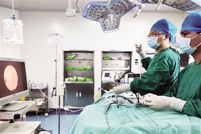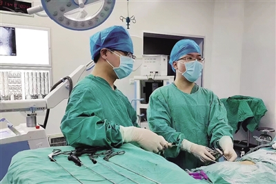 据了解,该科于2020年开始开展此项手术,目前已成功开展数十例,患者反应效果很好。UBE技术即单侧双通道内镜技术,采取单边入路双侧减压,两个小切口就能完成对椎管两侧的充分减压,且手术在内镜直视下操作,视野范围大、手术灵活,配合传统开放手术技术,大大提升了手术安全性及操作效率,缩短了手术时间。同时因为其创伤小,对肌肉损伤较小、透视少,从而减少了患者的卧床及恢复时间,并发症少。UBE技术已成为腰椎间盘突出症、腰椎滑脱及腰椎椎管狭窄症手术治疗的重要选择。