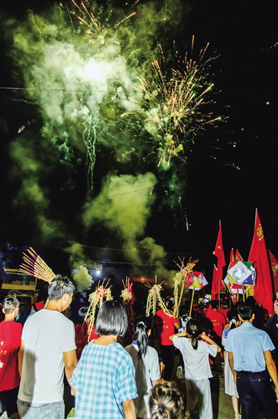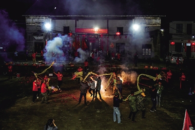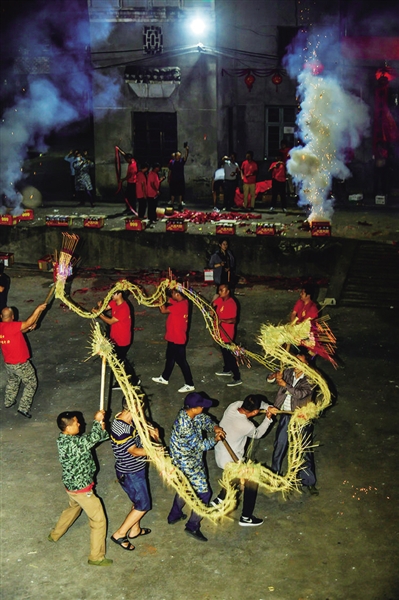 活动中,由村民们齐心协力编织的3条十余米长的稻草龙周身插满燃香,在月色和鞭炮闪耀的火光中上下翻腾、左右穿梭,形成极强的光影视觉效果,场面壮观、震憾人心。热闹的场面也吸引了许多群众前来观看,大家纷纷拿起手机拍照、直播,记录这个欢乐喜庆的时刻。