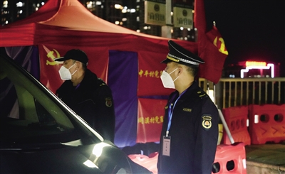 夜幕降临,秋风萧瑟。受疫情影响,原本喧闹繁华的愉景新城小区变得格外宁静,车水马龙的街道变得寂静而空旷。一群深入防控一线值守的公安、交警、城管化身为披星戴月的“守夜人”,守护着小区的万家灯火。